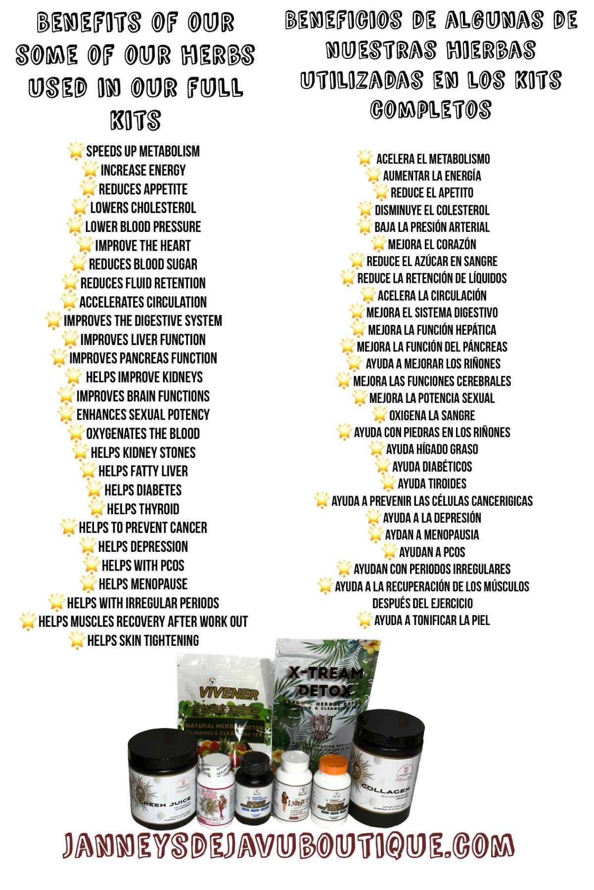 If you have problems of Diabetes, Thyroid, Fatty Liver, Kidney problems for example stones, PCOS, oh lack of energy OR YOU ARE CONSTIPATED, FEEL LACK OF ENERGY (laziness) and you can not stop eating, I HIGHLY RECOMMEND THESE PRODUCTS they will help your body get rid of all the bad toxins, food usually contains chemicals that are preservatives and hormones. Sometimes the only thing our body needs to return to normality is a deep detoxification, EVEN THOUGH OUR LIVER IS MADE TO PROCESS ALL OF THAT SOMETIMES IT GETS CLOGGED, Just like cars need to have maintainece and we have to change the oil, it is the same with our body, THIS KIT WILL WILL HELP ALL THIS 100% Natural and THE HERBS YOU USE HAVE MANY MORE BENEFITS , WE USE ANCESTRAL MEDICINE FROM ALL OVER THE WORLD 🌎 🌎. THEY ARE MADE IN THE USA 🇺🇸
