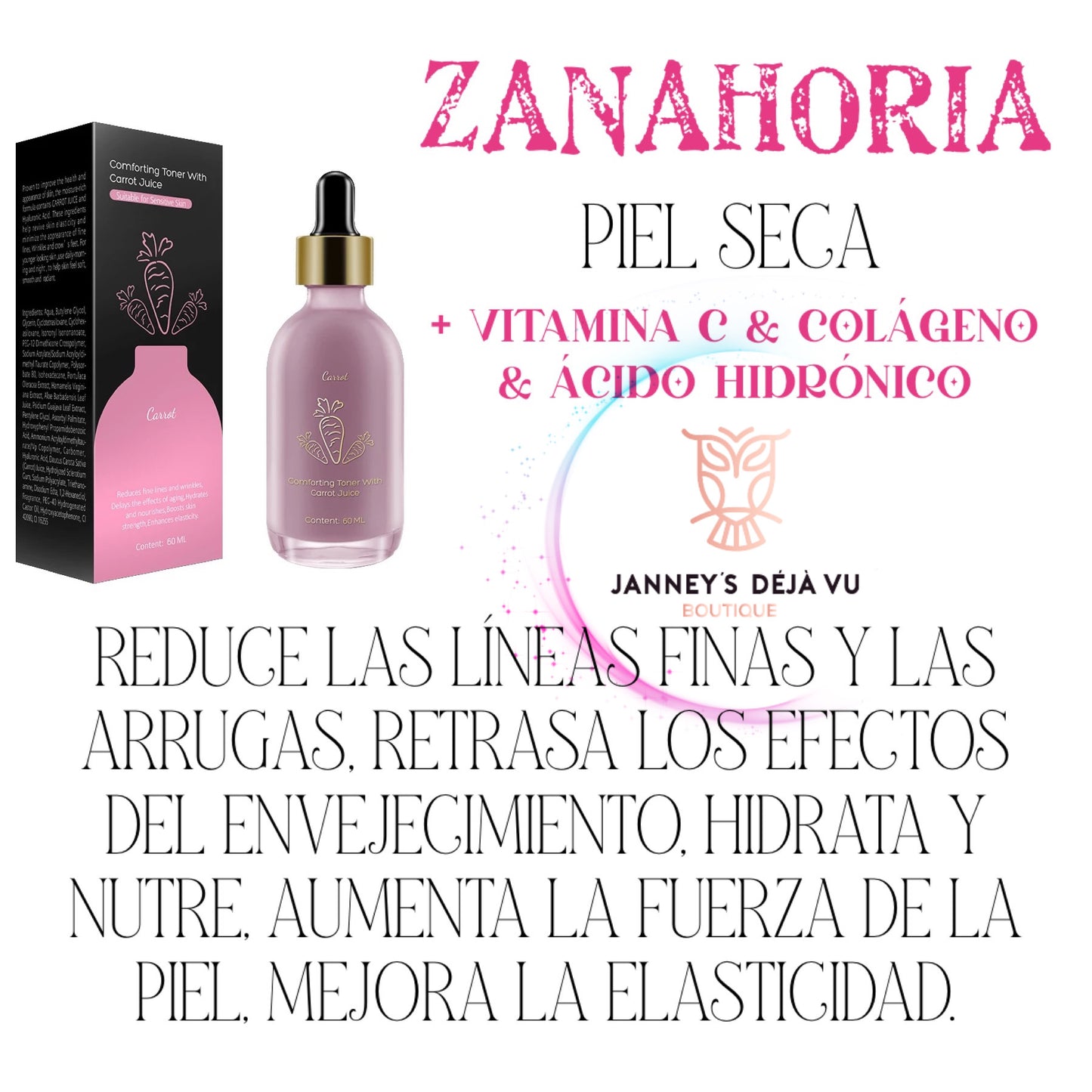 CARROT DRY SKIN + WITCH HAZEL ,VITAMIN C , COLLAGEN , HYDRONIC ACID